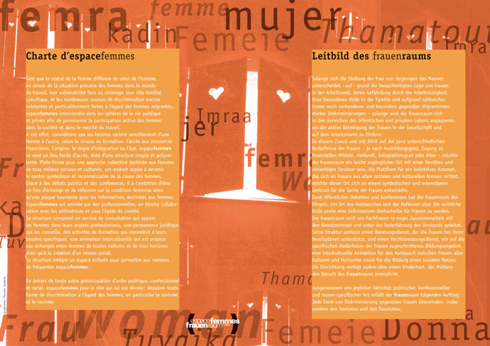 En 2001, Femmes en Suisse est devenu l'émilie. C'est alors que le mandat pour son graphisme, la création de la maquette, logo, image de couverture qui change chaque mois, selon le thème du dossier, m'est confié. C'est en novembre 2009, que l'émilie disparaîtra de la presse papier, c'est aussi la fin de mon mandat. Mon mandat a duré presque dix ans, la création de plus de 80 couvertures et mises en page. -